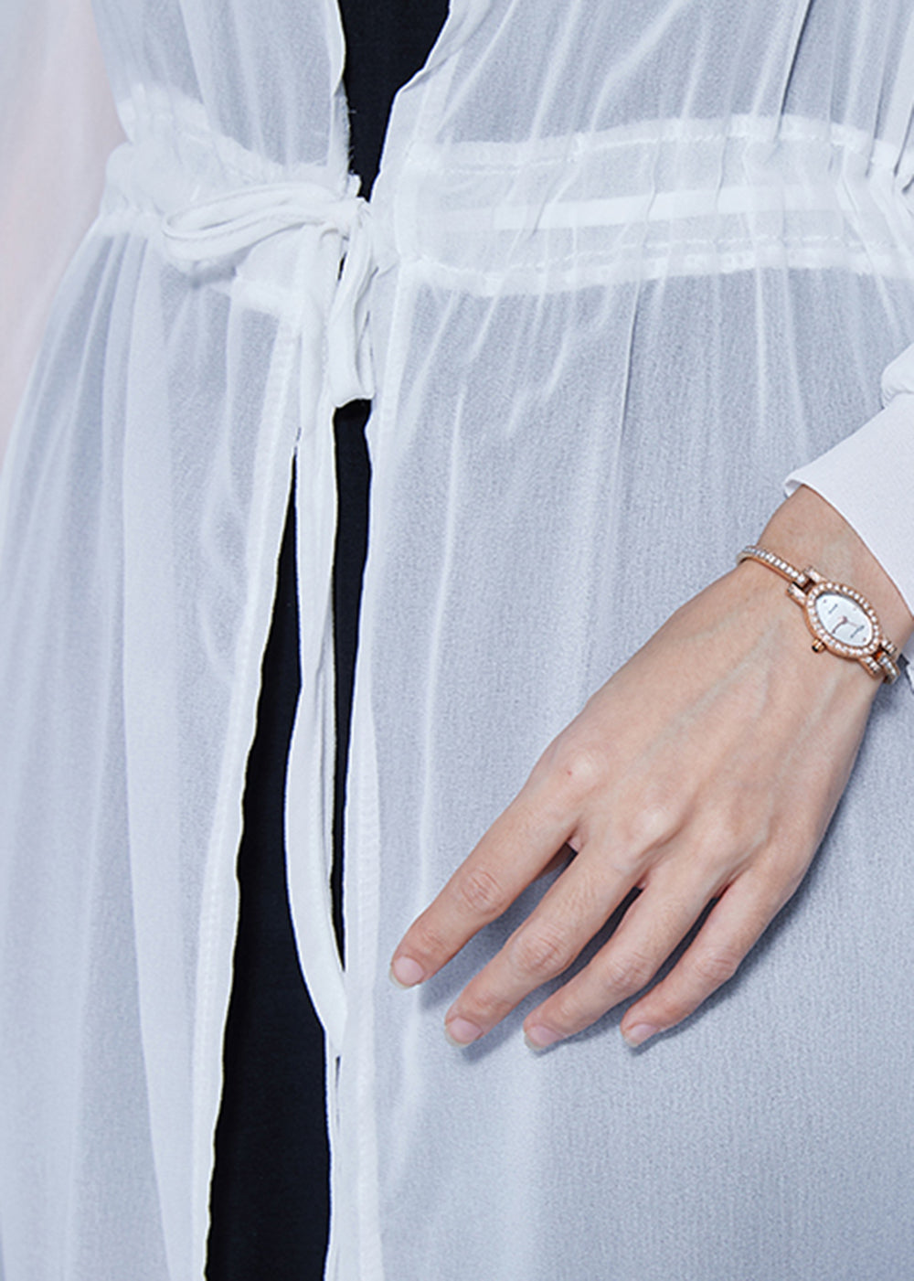 Bohemian White Tie Waist Exra Large Hem Chiffon UPF 50+ Coat Summer