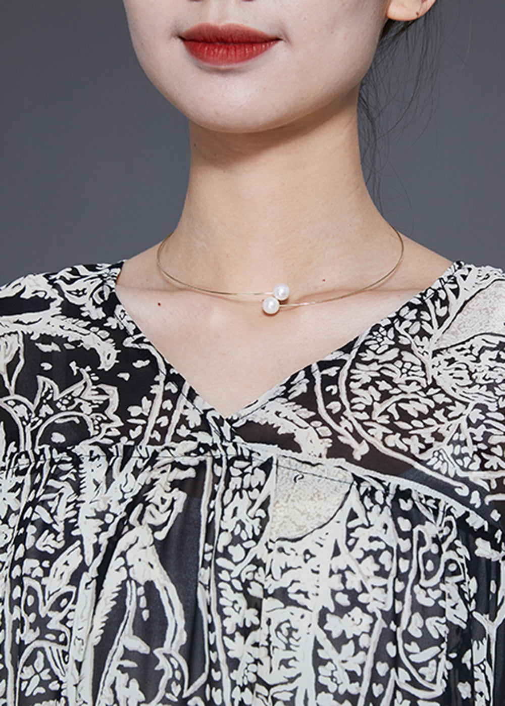 Boho Black V Neck Cinched Print Chiffon Long Dress Spring