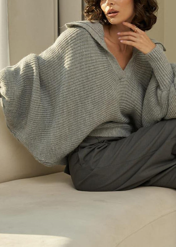 Boho Grey Peter Pan Collar Thick Cotton Knit Sweaters Fall