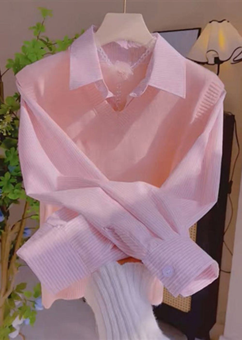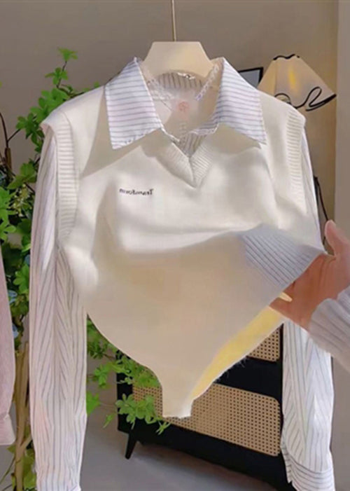 Casual Grey Peter Pan Collar False Two Pieces Patchwork Knit Tops Spring