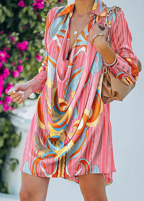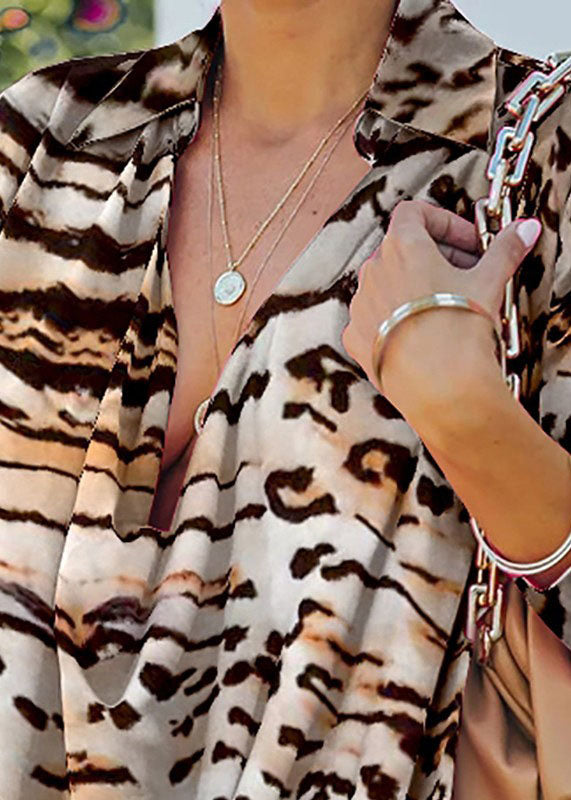 Casual Peter Pan Collar Asymmetrical Design Leopard Print Chiffon Mid Dress Long Sleeve