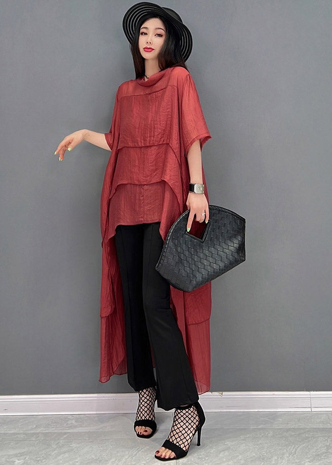 Casual Red O-Neck Asymmetrical Patchwork Dresses Short Sleeve