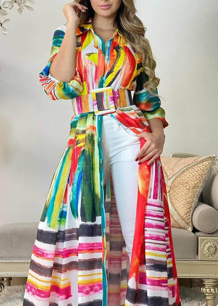 Chic Colorblock Peter Pan Collar Print Cotton Shirts Dresses Spring
