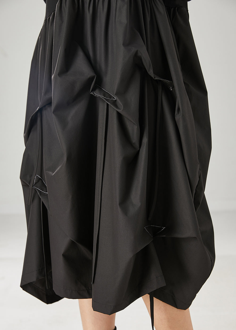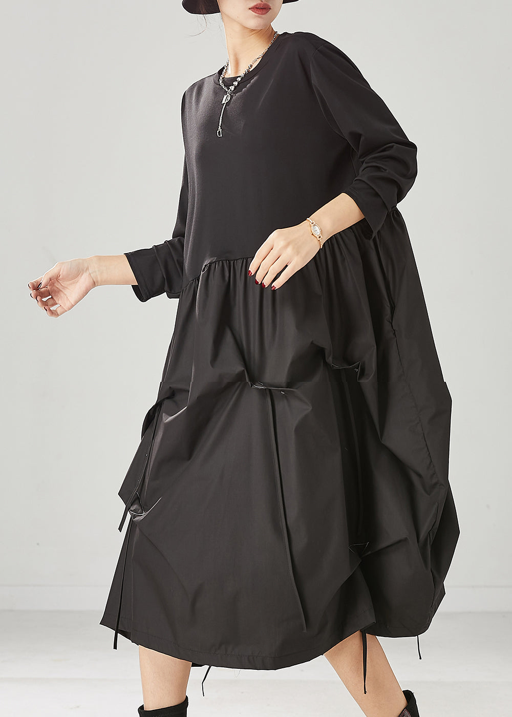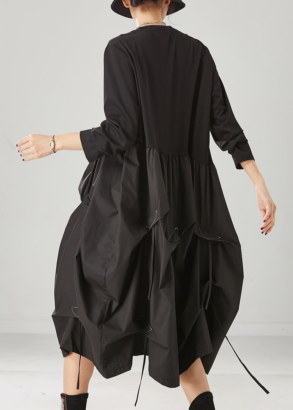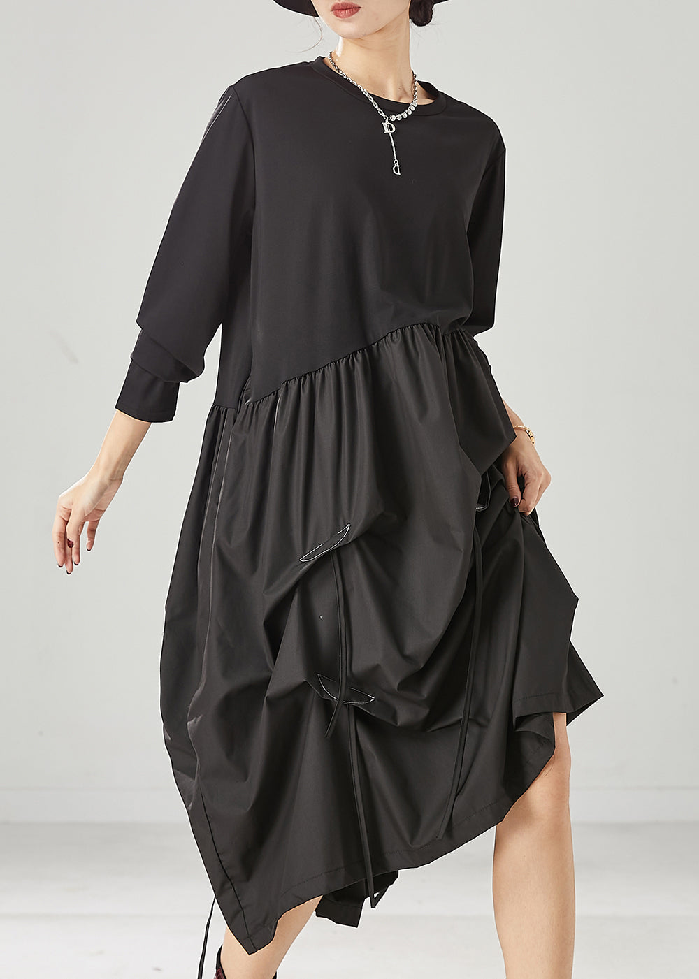Classy Black Asymmetrical Patchwork Wrinkled Cotton Robe Dresses Spring