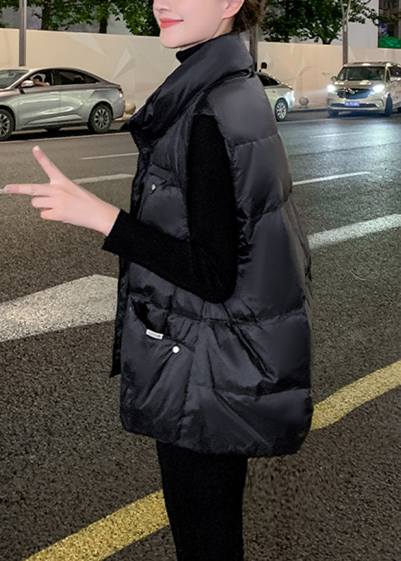 Classy Black Patchwork Pockets Duck Down Down Waistcoat Sleeveless