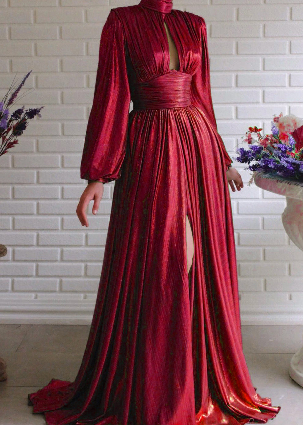Classy Green Hollow Out Wrinkled Side Open Ankle Dress Spring