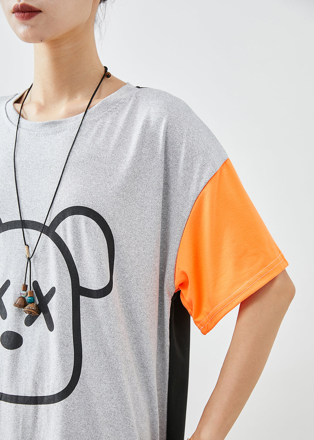 Classy Grey Oversized Patchwork Bear Print Cotton Maxi Dress Summer