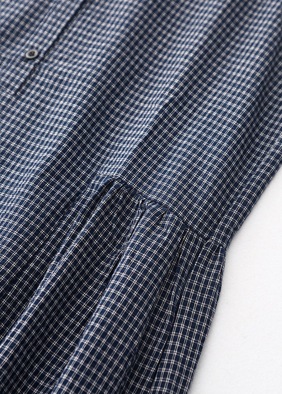 Classy Grey Oversized Plaid Linen Maxi Dresses Sleeveless