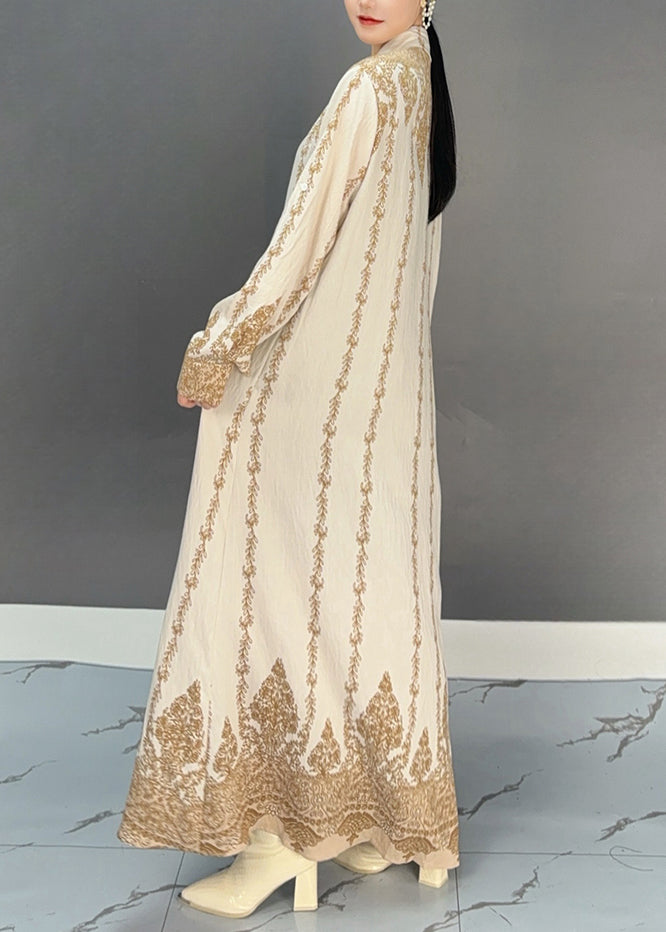 Elegant Red Peter Pan Collar Embroidered Print Maxi Dress Lantern Sleeve