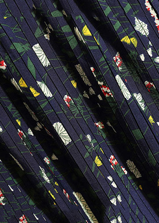 Fashion Navy Print High Waist Patchwork Chiffon Pleated Skirt Summer
