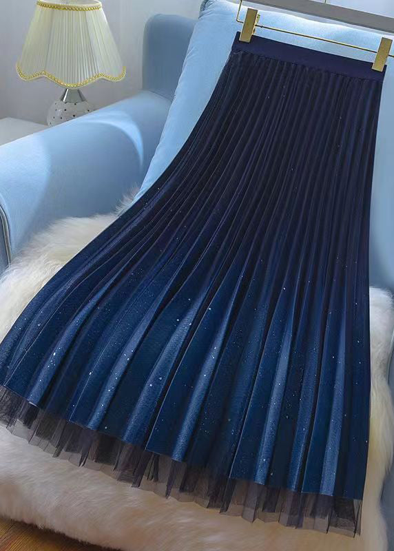 Fashion Purple Gradient Wrinkled High Waist Tulle Skirt Spring