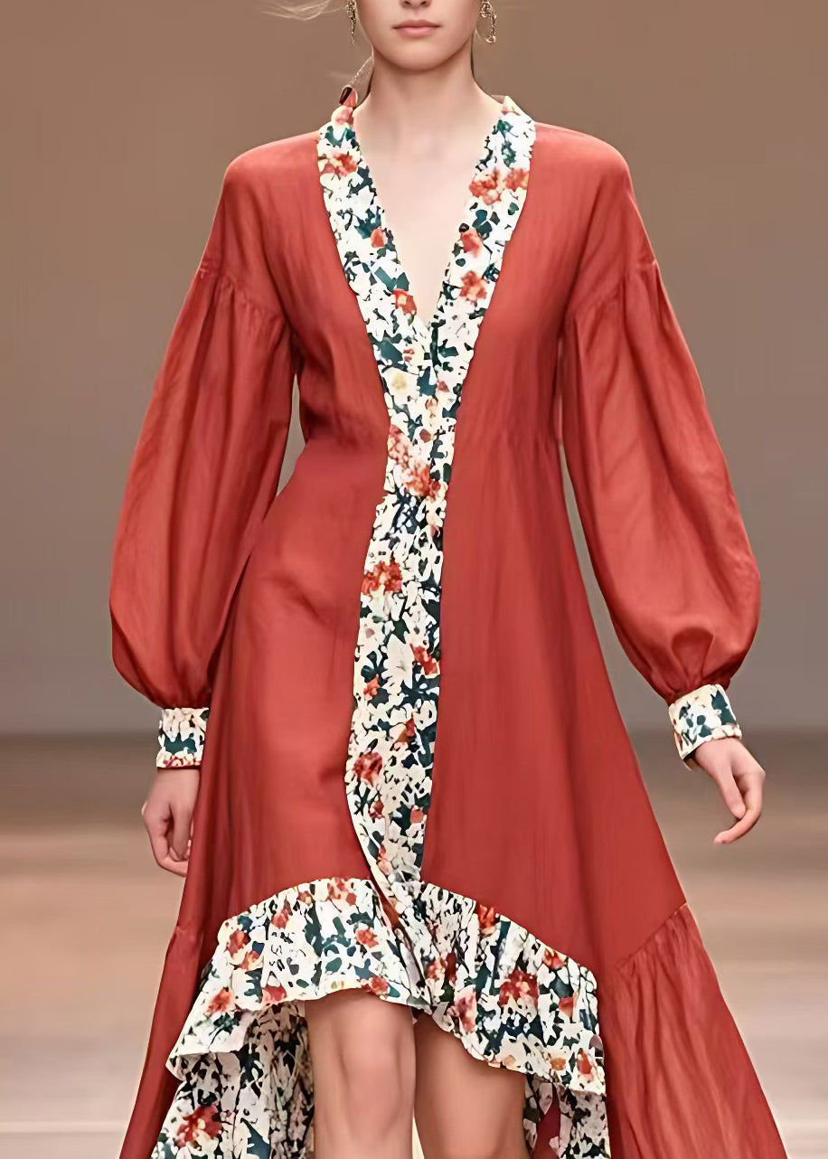 Fashion Red Print Asymmetrical Long Dresses Fall