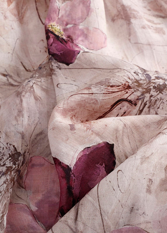 Fine O-Neck Print Wrinkled Linen Long Dress Summer