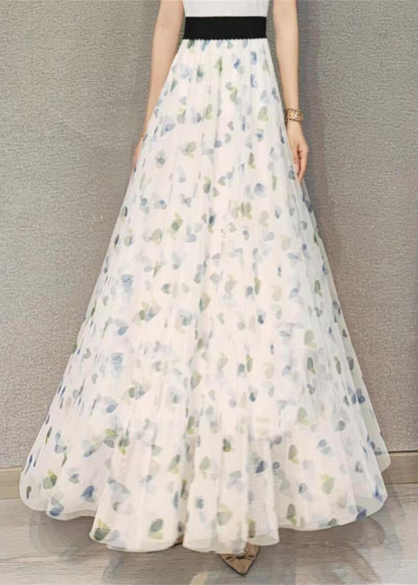 French Black Print Elastic Waist Exra Large Hem Tulle Skirt Spring