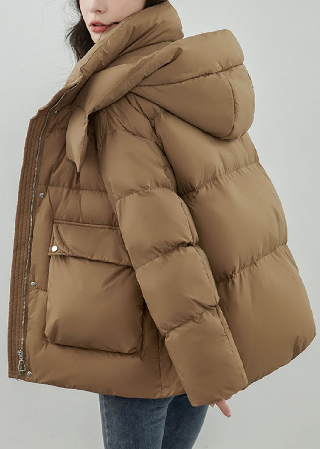 Khaki Button Patchwork Duck Down Coat Hooded Long Sleeve