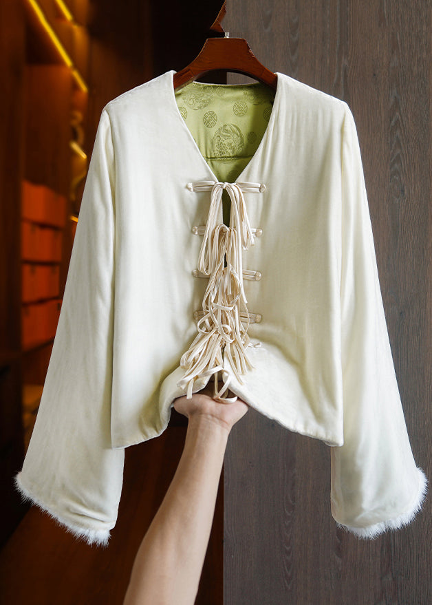Loose Black V Neck Lace Up Pockets Silk Velour Parka Fall