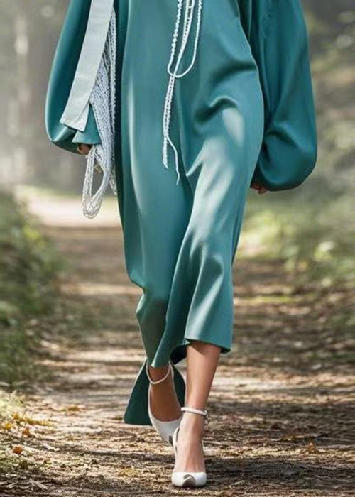 Loose Blue V Neck Solid Patchwork Dress Spring