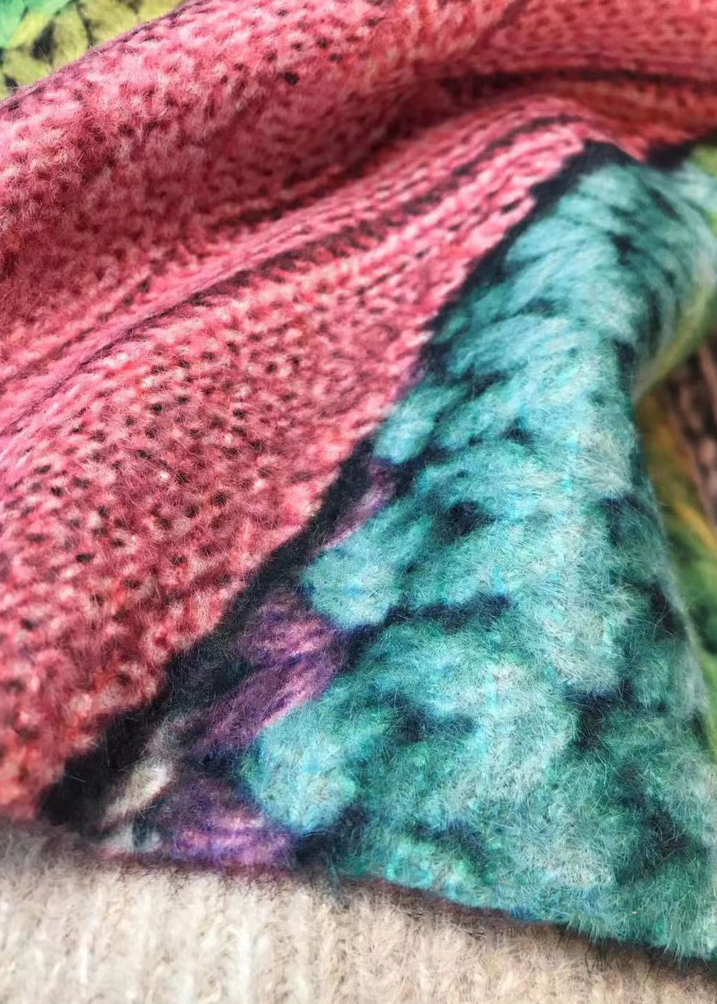 Loose Colorblock Turtleneck Patchwork Mink Hair Knitted Tops Fall