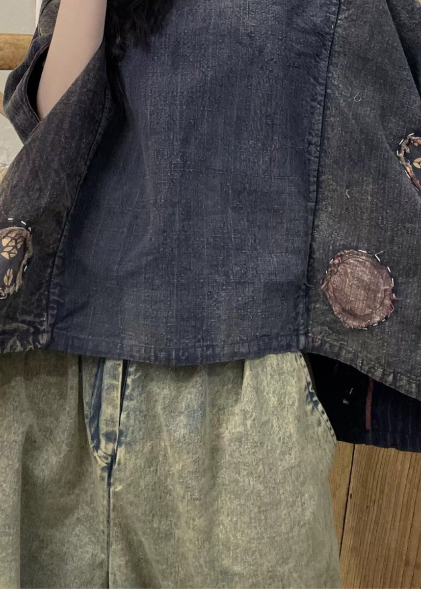 Loose Colorblock V Neck Ruffled Cotton T Shirt Summer