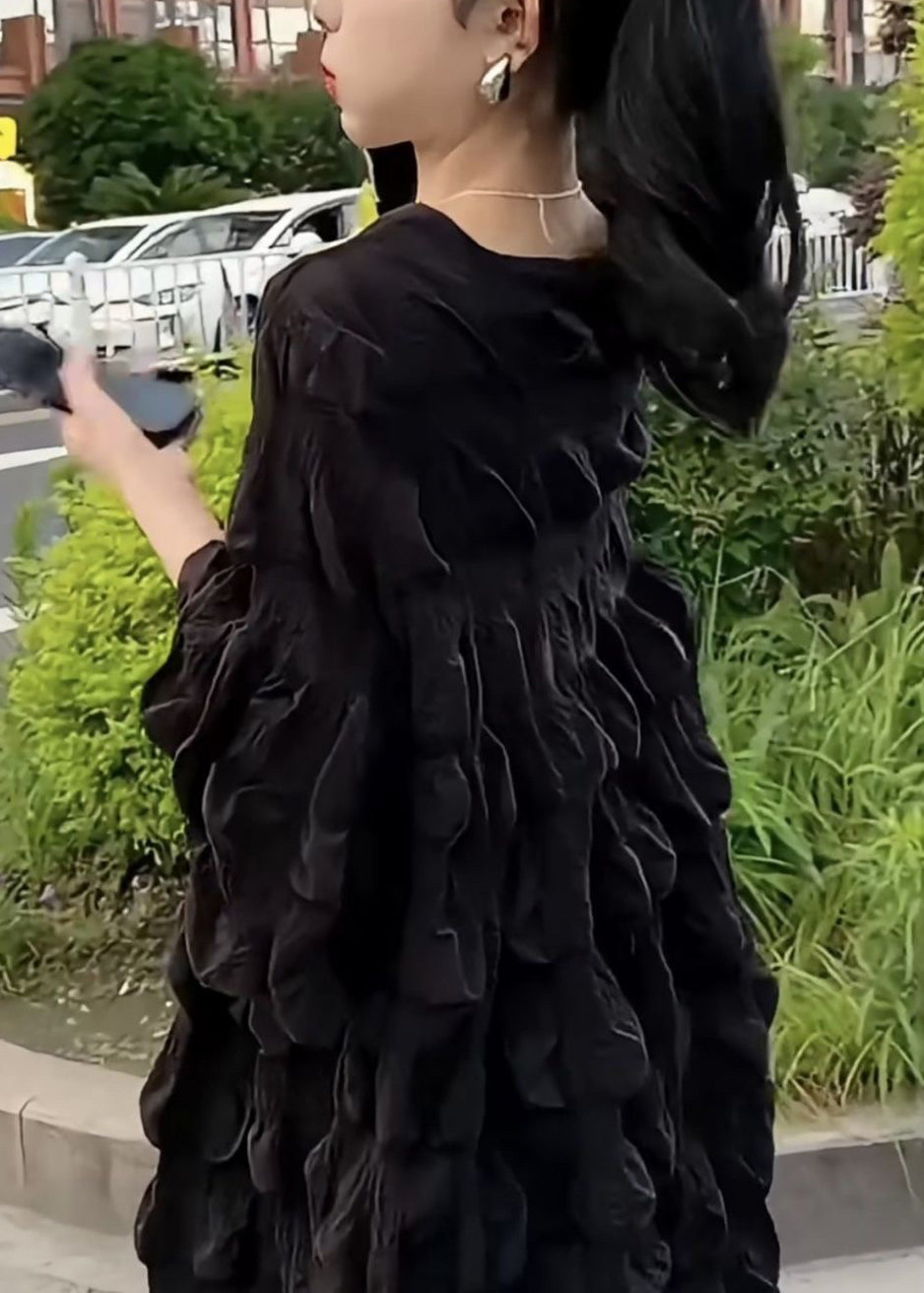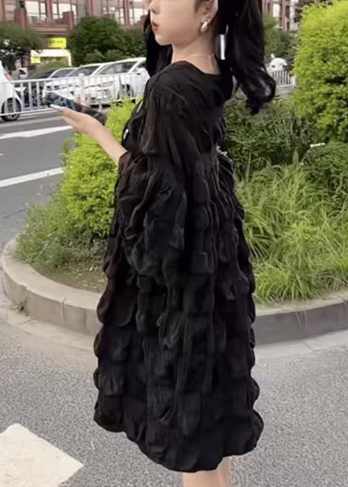 Loose Grey V Neck Original Design Cotton Dress Flare Sleeve