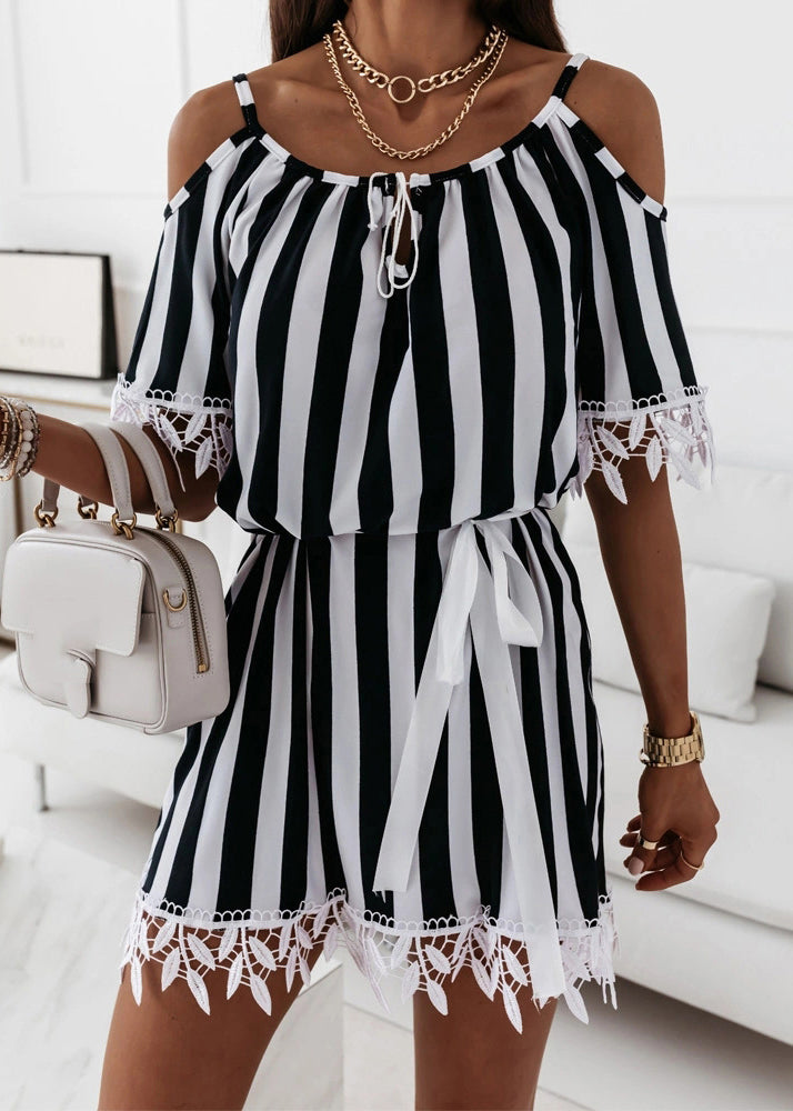 Loose Striped Lace Up Cotton Mid Dress Summer