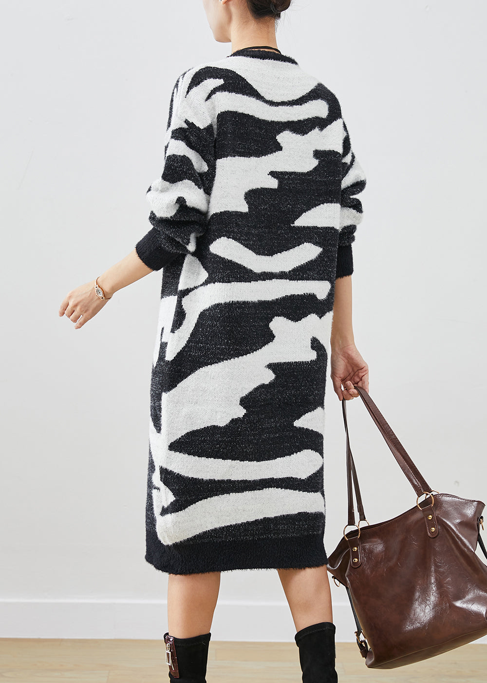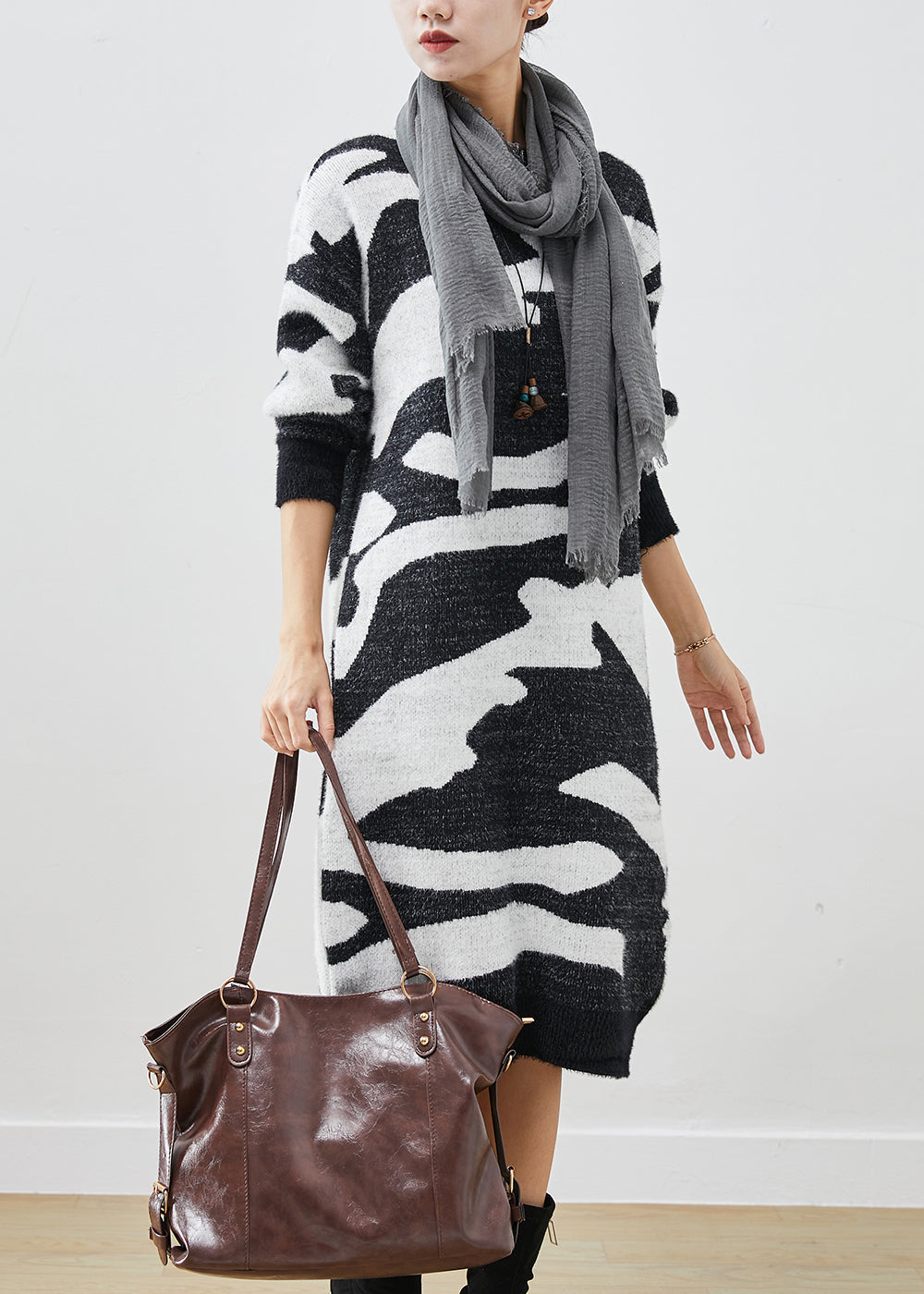 Modern Colorblock Oversized Print Knitted Dress Winter