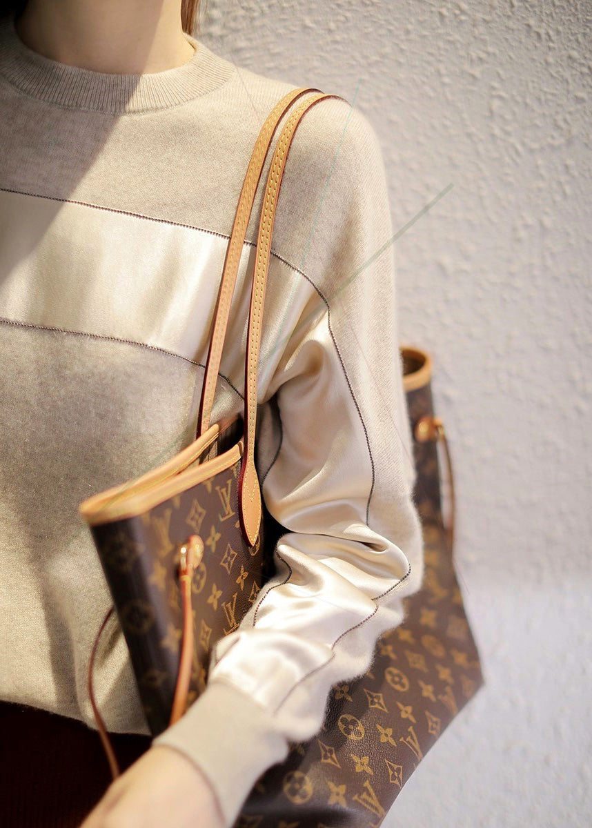 Modern Grey O-Neck Chiffo Patchwork Knit Pullover Long Sleeve