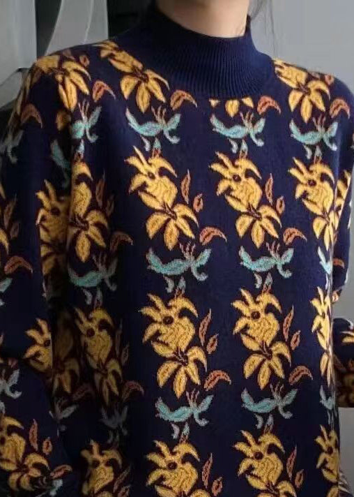 New Coffee Turtleneck Print Patchwork Wool Knit Sweaters Fall