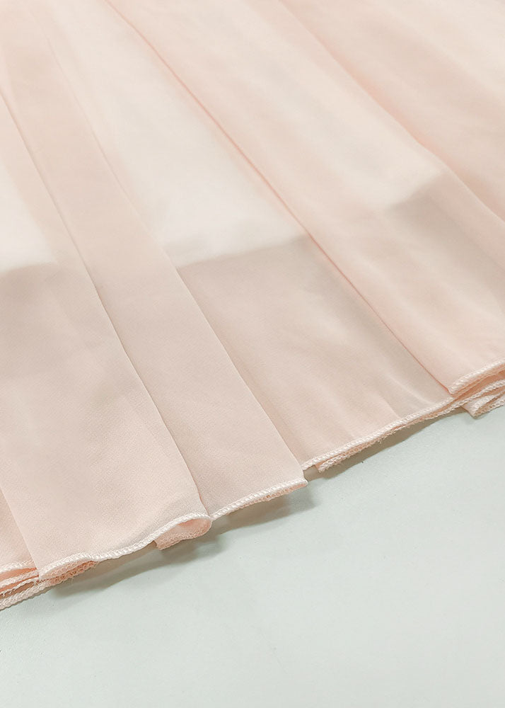 New Sky Blue Lace Up High Waist Patchwork Chiffon Pleated Skirt Summer