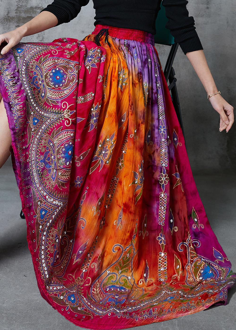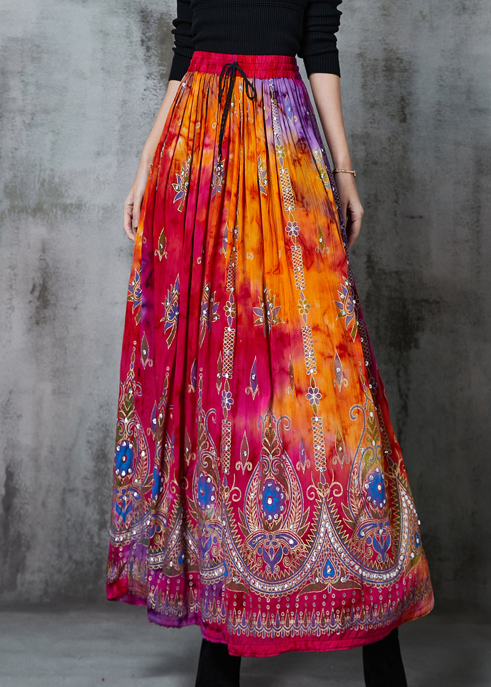 Orange Tie Dye Cotton Skirt Exra Large Hem Spring