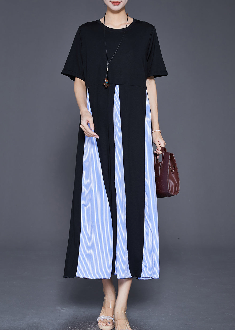 Organic Black Exra Large Hem Patchwork Striped Cotton Holiday Dress Summer