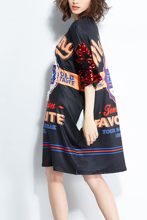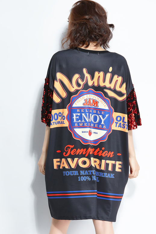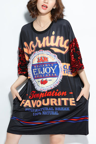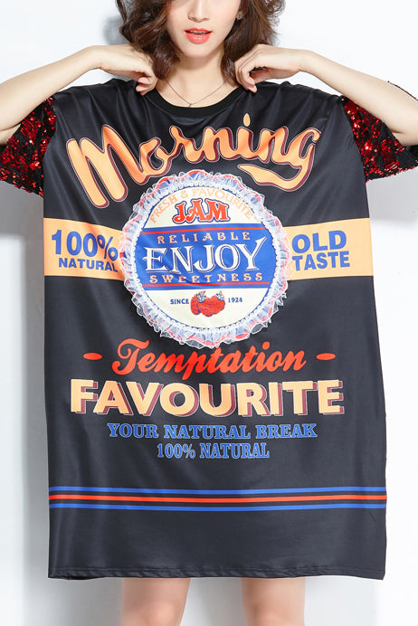 Organic black print silk Cotton Organic Fabrics o neck shift summer Dresses