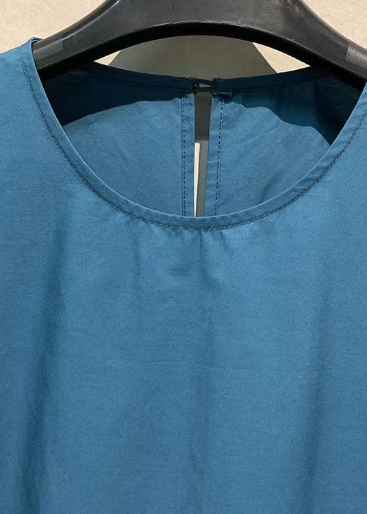 Organic Blue O Neck Wrinkled Patchwork Cotton Maxi Dresses Sleeveless