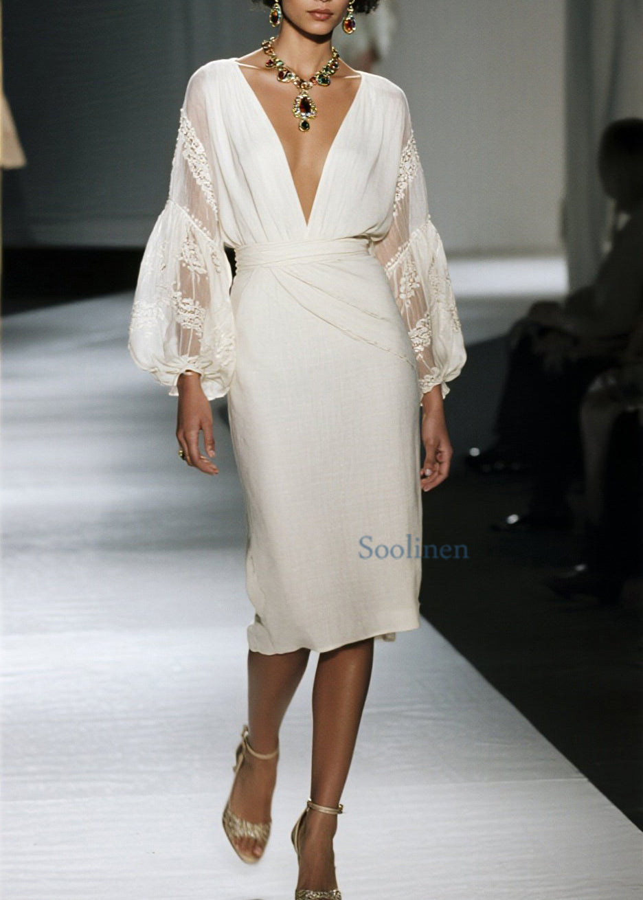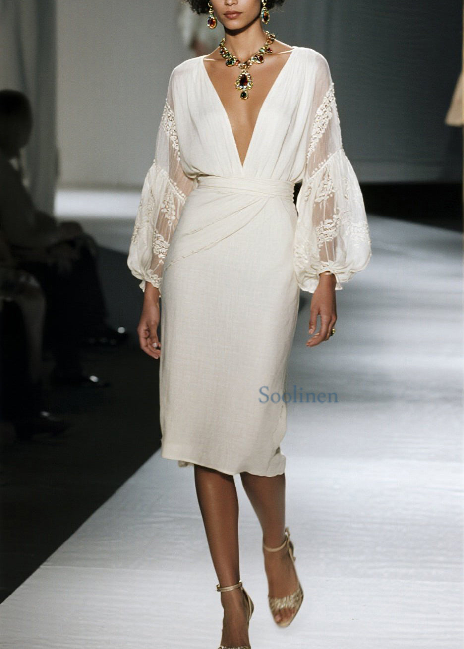Organic V Neck Lace Patchwork Cotton Dress Spring
