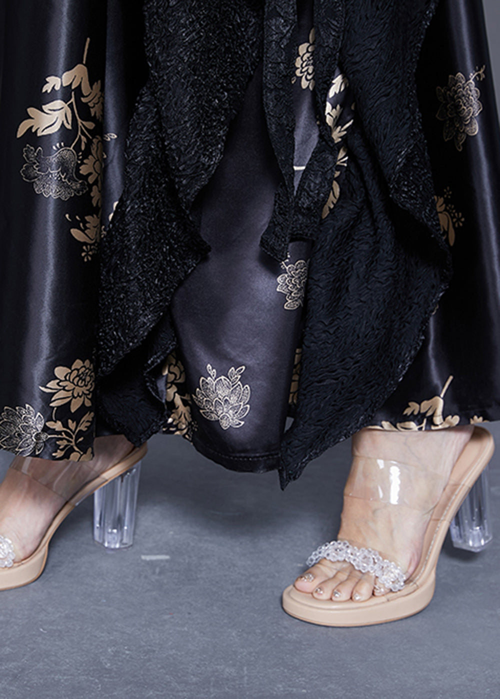 Original Design Black Oversized Patchwork Exra Large Hem Silk Dress Spring