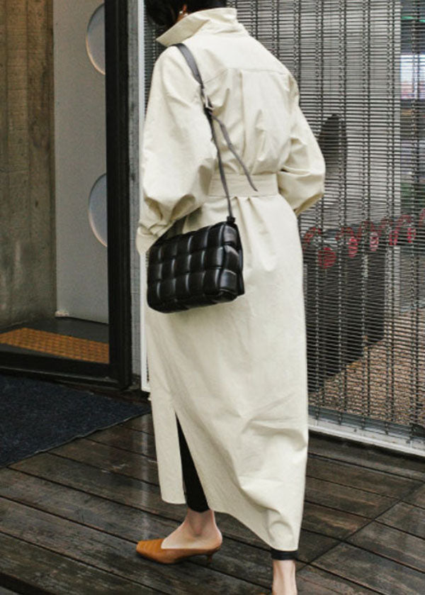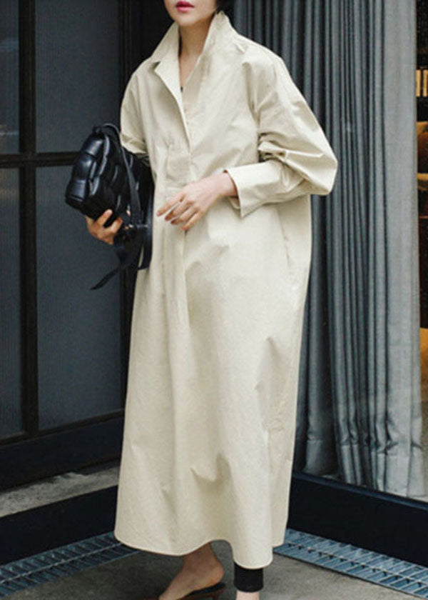 Plus Size Apricot Loose Cotton Dress Cinched Spring