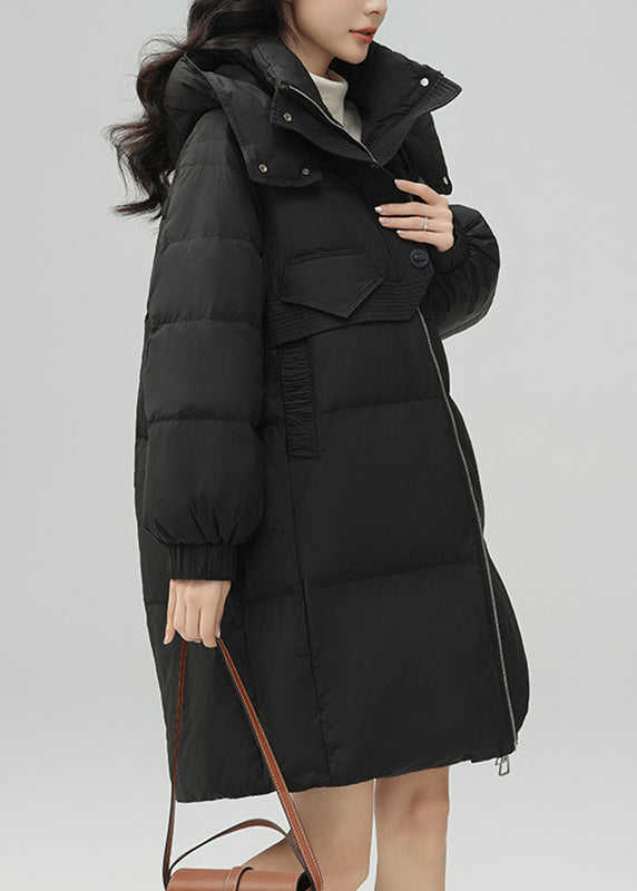 Plus Size Black Zippered Pockets Patchwork Duck Down Coat Winter