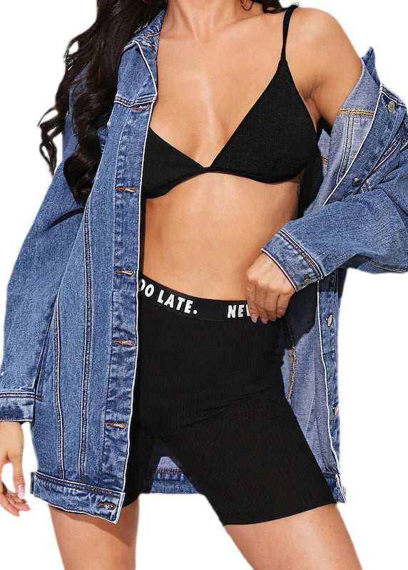Plus Size Blue Peter Pan Collar Pockets Denim Coats Fall