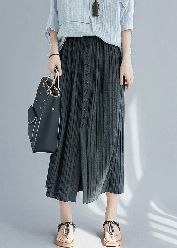 Plus Size Khaki Exra Large Hem Side Open Cotton Pleated Skirts Summer