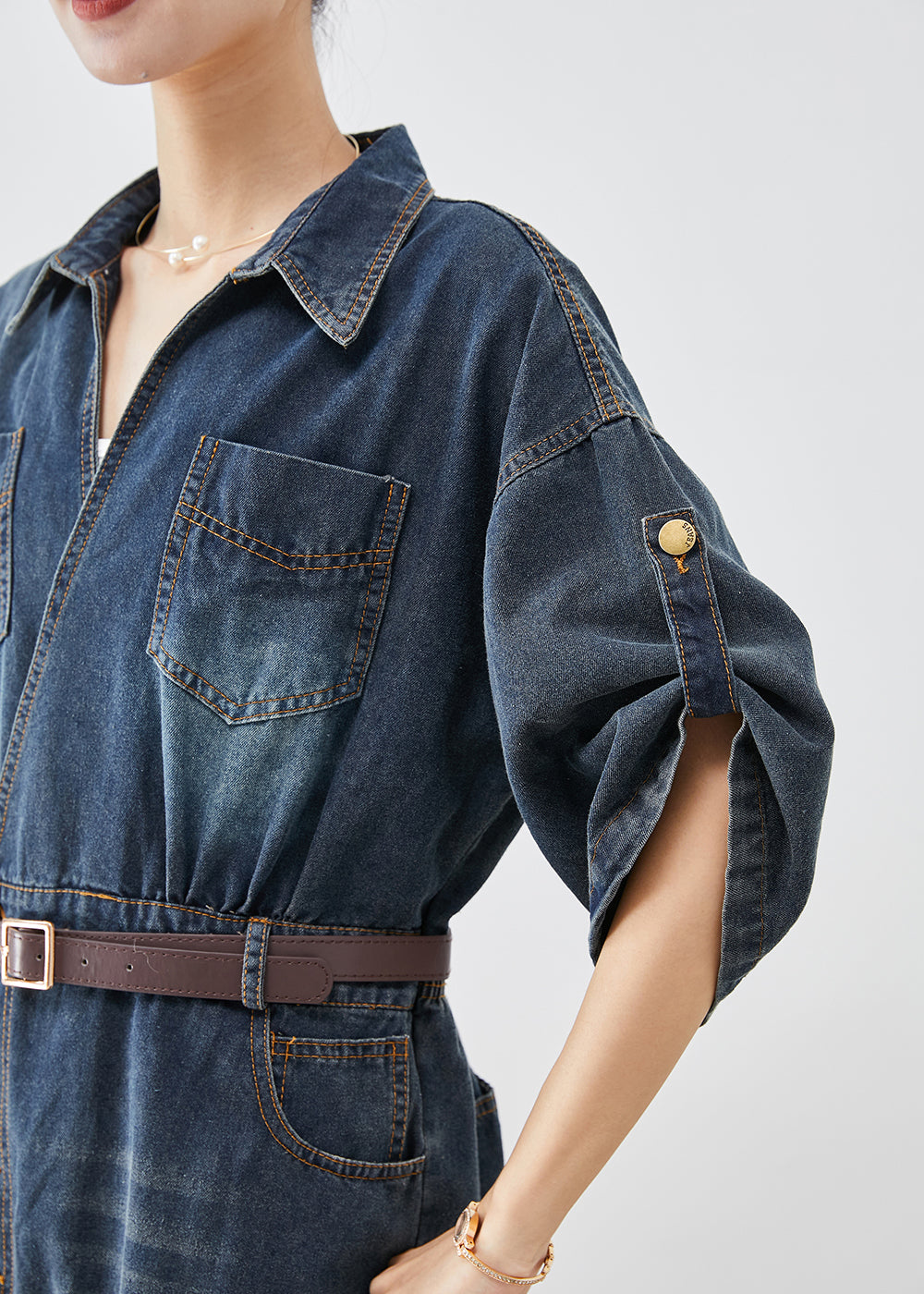 Plus Size Navy V Neck Denim Holiday Dress Spring
