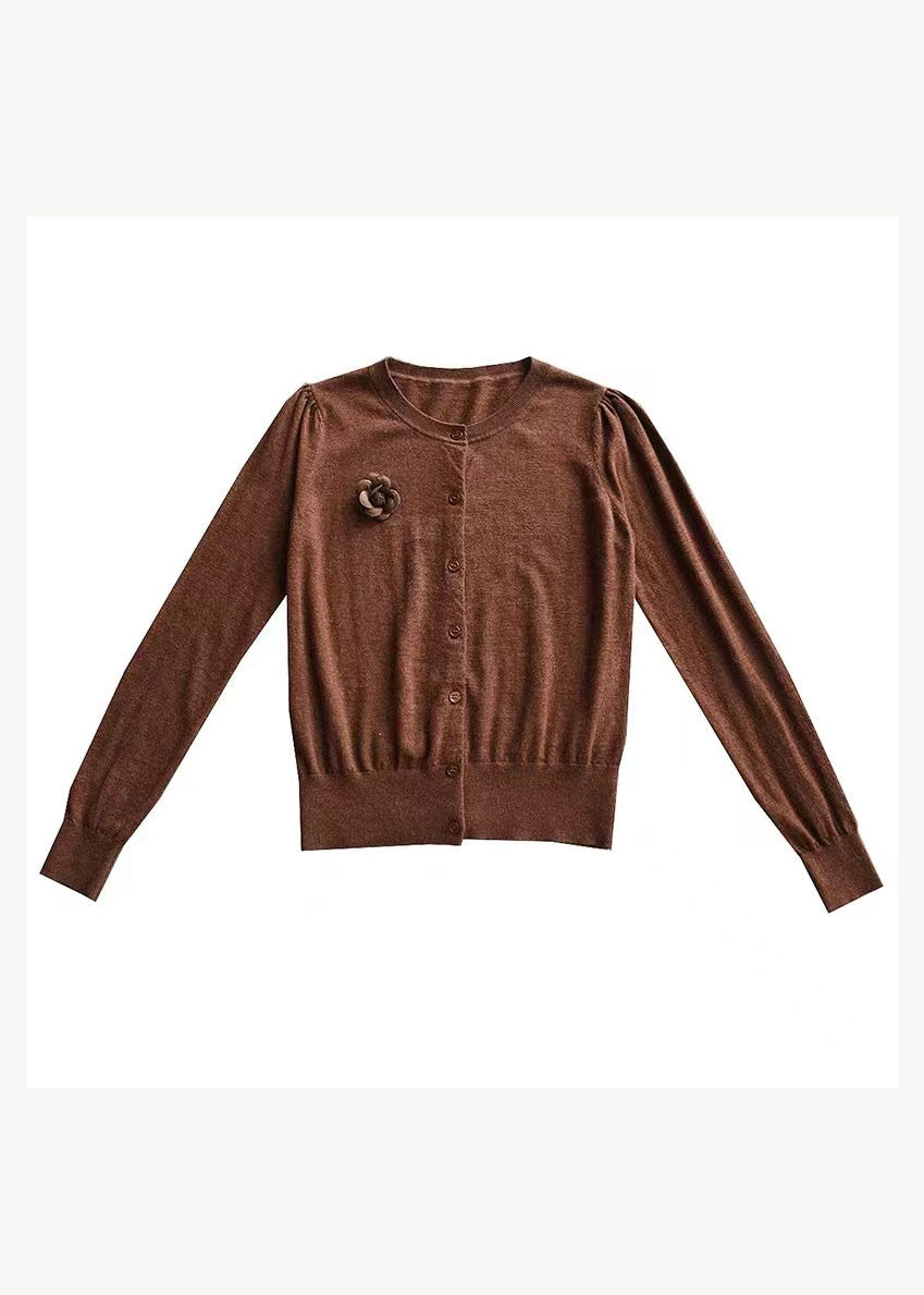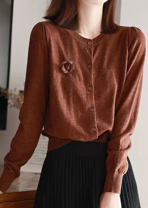 Plus Size Purple O Neck Floral Patchwork Woolen Knit Cardigans Fall