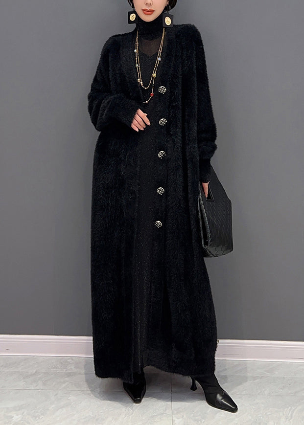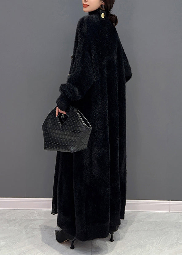 Plus Size Purple V Neck Patchwork Mink Hair Knitted Cardigan Fall