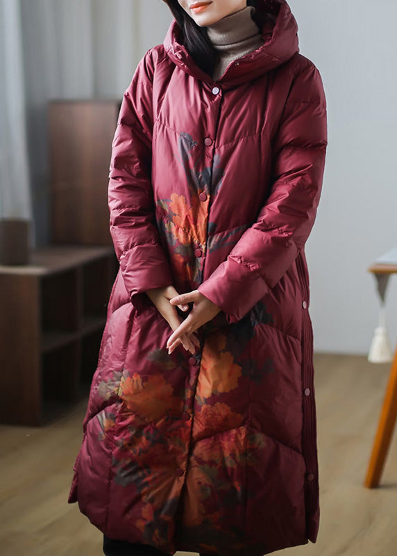 Red Button Warm Fleece Thick Duck Down Long Down Coat Winter