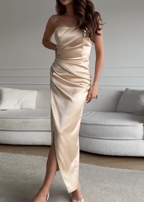 Sexy Green One Shoulder Side Open Slim Fit Silk Dress Sleeveless