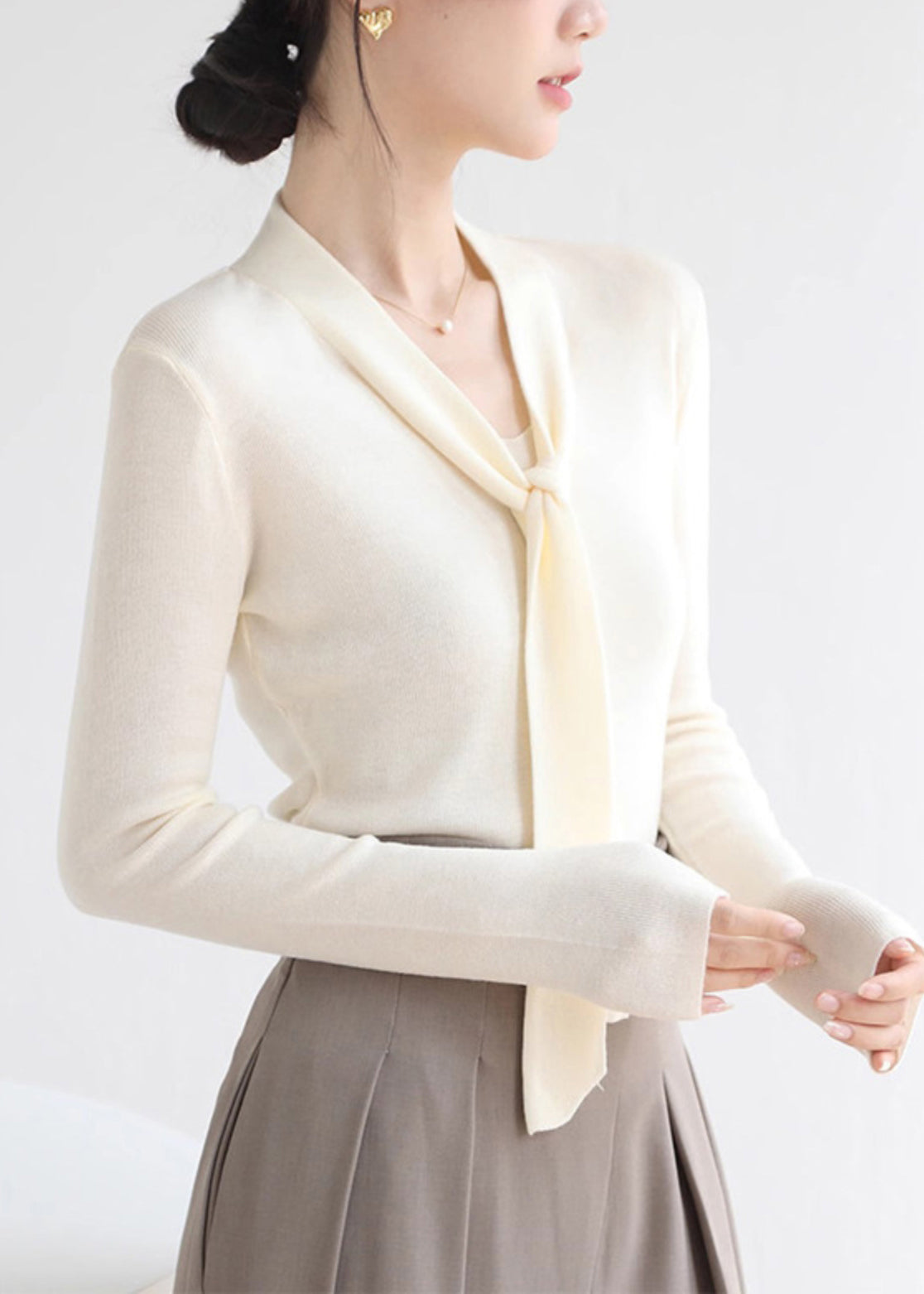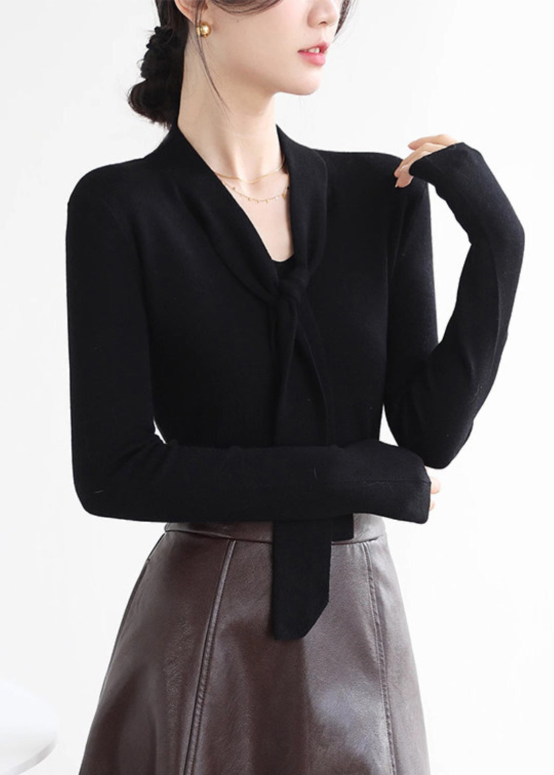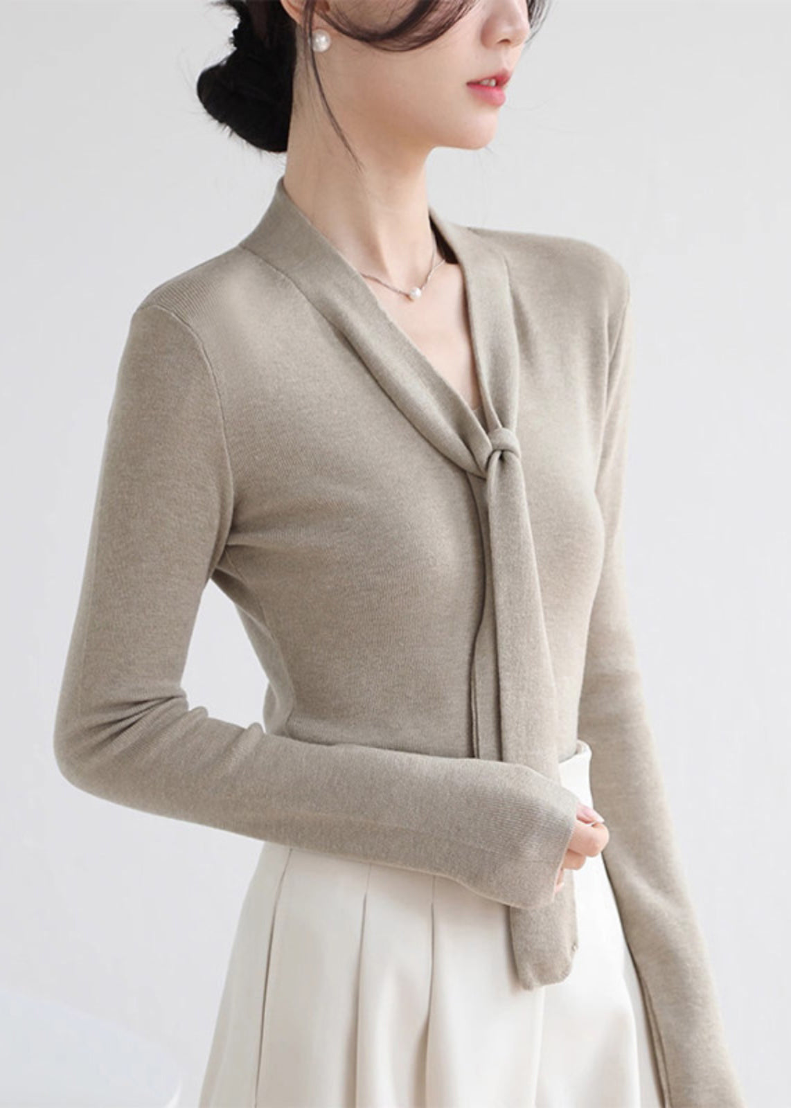 Sexy Red V Neck Tie Lace Solid Cotton Knit Sweater Spring