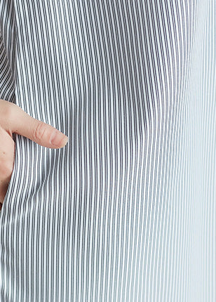 Simple black white striped cotton dresses Fine Sewing stand collar tunic Summer Dress