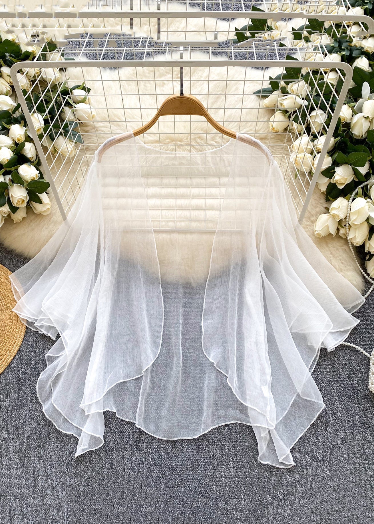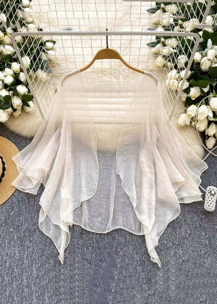 Simple Blue V Neck Solid Tulle Cardigan Summer