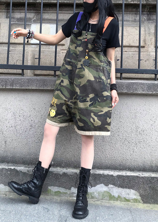 Simple Green Graphic Print Denim Straight Jumpsuits Summer