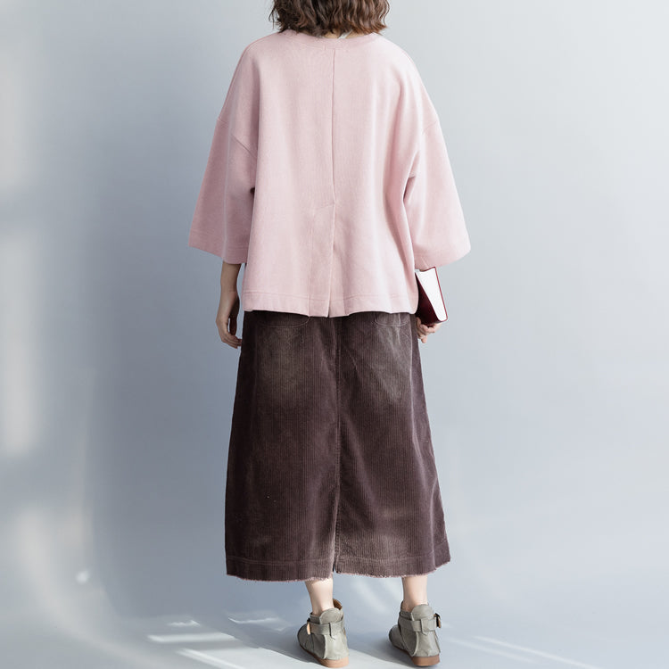 Simple pink cotton blouses for women Fitted Tunic Tops cotton spring O neck shirt