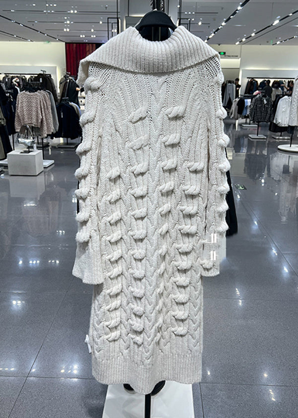 Stylish Plus Size Beige Peter Pan Collar Cable Knit Cardigans Spring